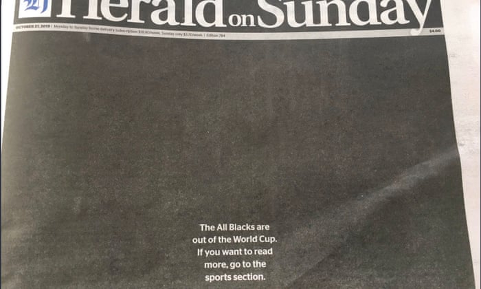 Rugby World Cup Il Lutto Nella Prima Pagina Del New Zealand Herald Per La Sconfitta Degli All Blacks