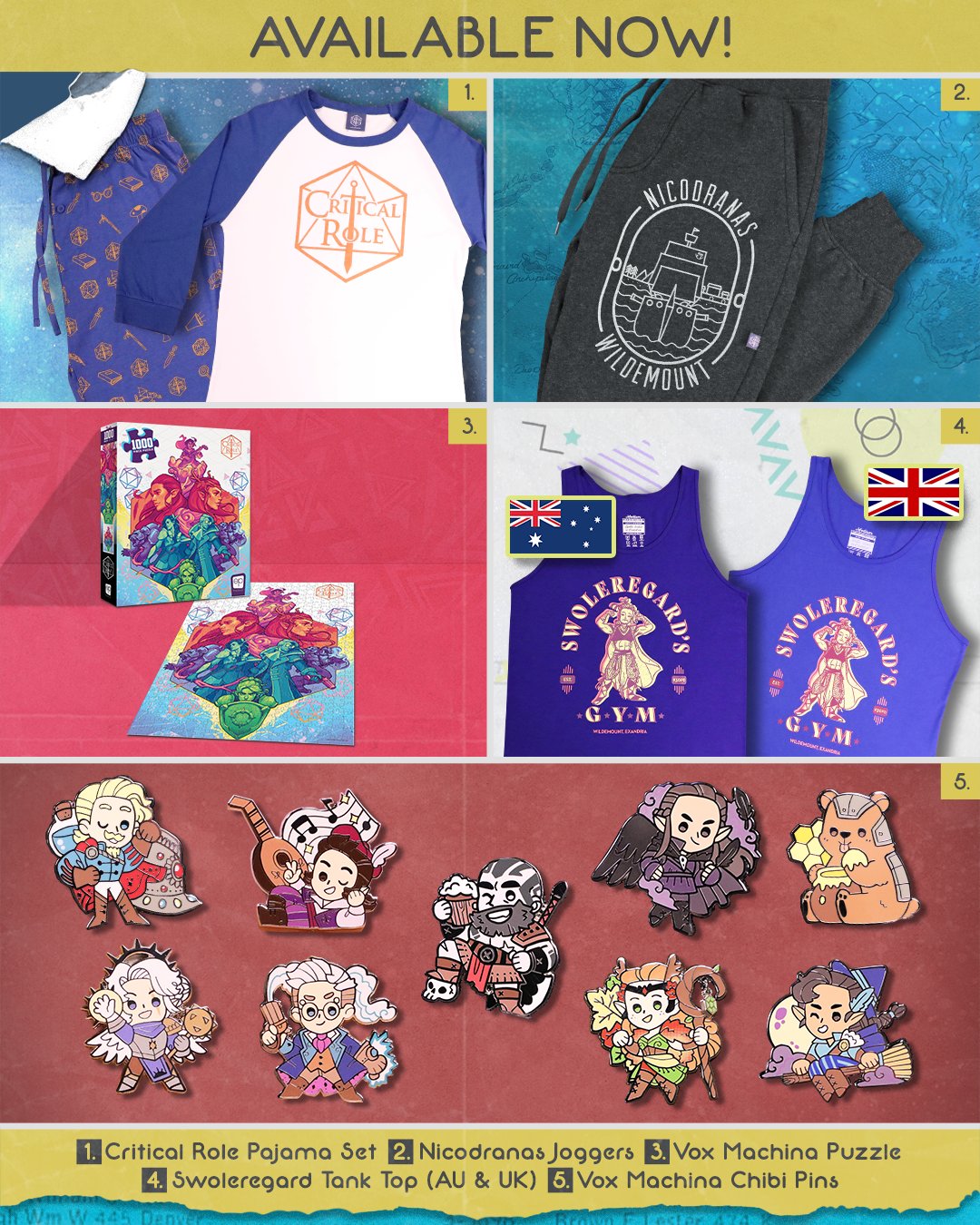 Critical Role No Twitter Mega Merch Alert Snag Our Critical Role Pajama Set Nicodranas Joggers Vox Machina Puzzle By Theopgames Swoleregard Tank And Vox Machina Chibi Pins From All Of Our Online